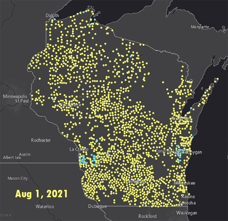 You can read more about the rationale and background on GPS on BM in this SCO news article, published earlier this year. That article also gives a status report on the initiative in Wisconsin as of June, 2021. Below you will find an update to that status report, using statistics from early September, 2021. The state has made great progress over the summer. With four months to go on the initiative, there’s still time to reach all of the project goals.