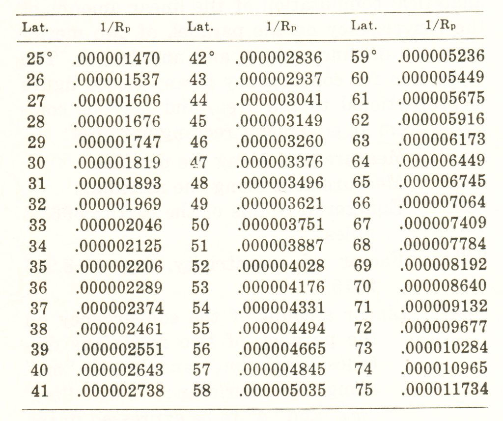 Fig 3. Table in section 2-79, p. 56 of the 1973 edition of Manual of Surveying Instructions