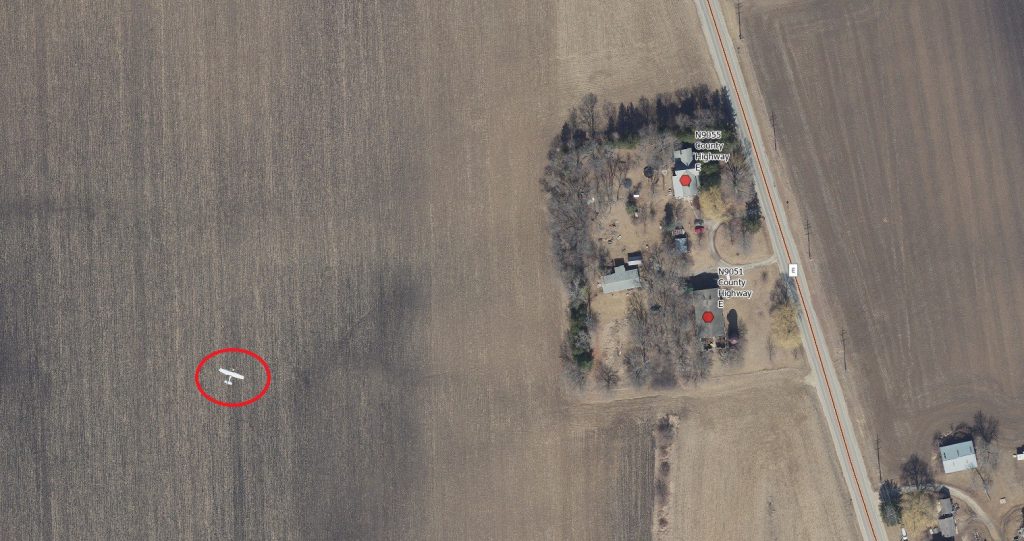 Is there a connection between the giant shoe and this giant guitar, also located in the Wisconsin Dells area? We don’t know! Interestingly, it seems the guitar has moved a bit since 2015 if you look at present-day aerial photography. Submitted by Kelly Felton, Sauk County. Photo date: 2015.